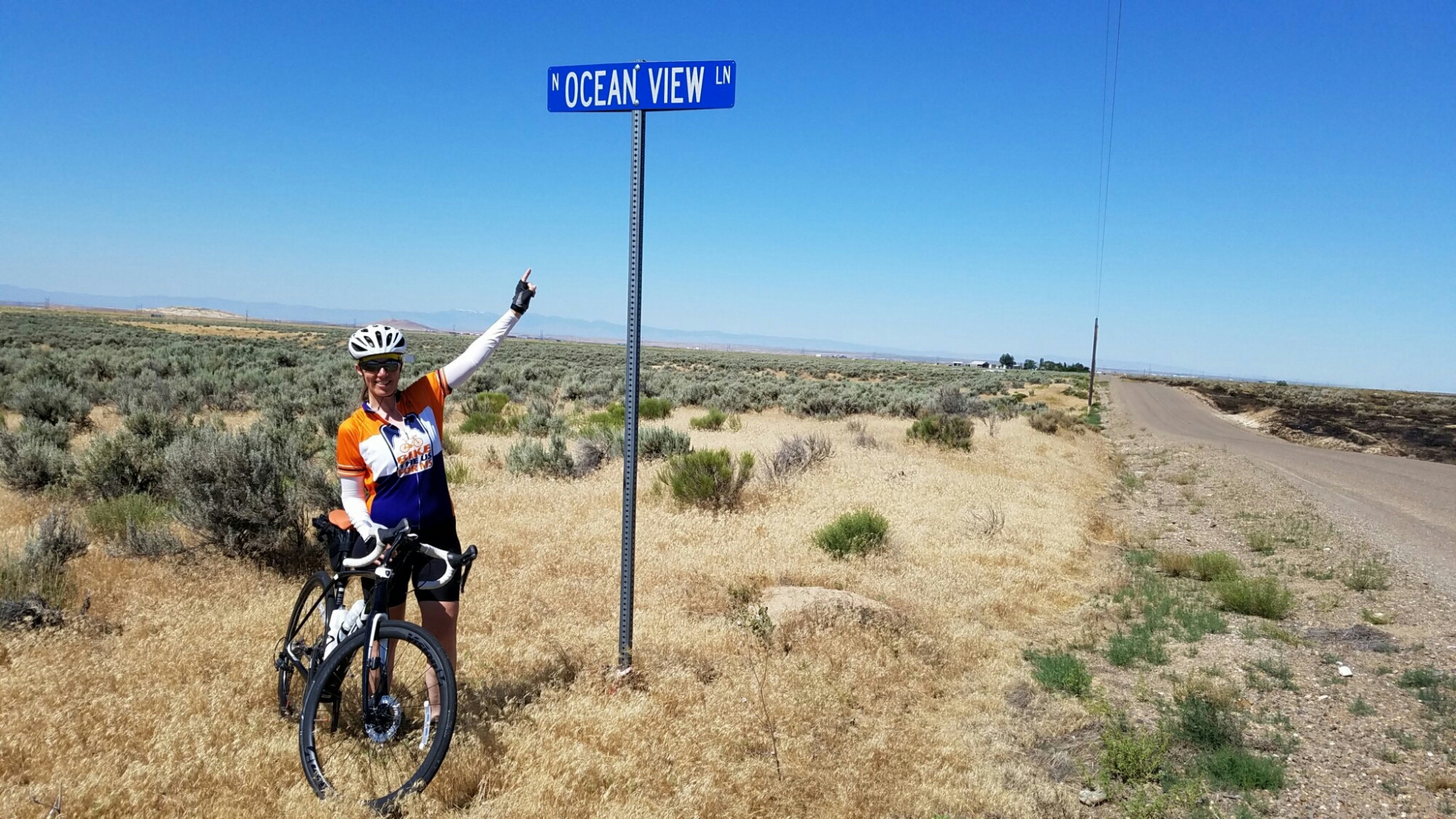 If it hadn’t been for a couple other riders stopped at this point, I wouldn’t have gotten this photo but they were there and had us stop so we could all get a shot with the very optimistic “Ocean View Lane” street sign.