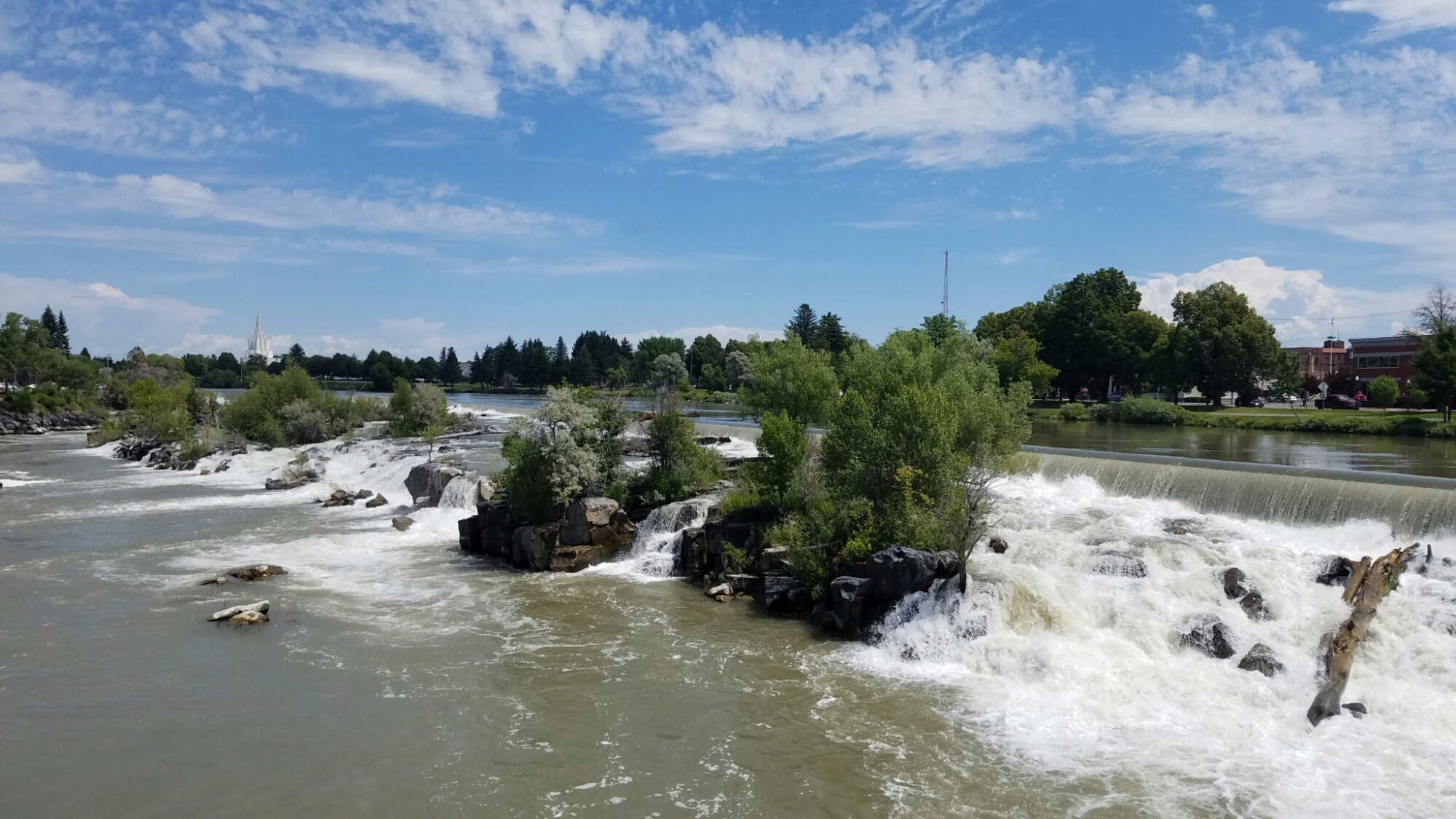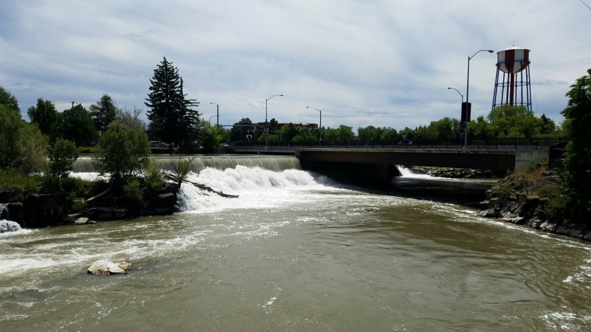 As we got into Idaho Falls, I dropped back and took photos of the falls. They aren’t very high but they are wide and come out at various points. The city has built a wonderful walkway/bike path along both sides of the river and falls. I do enjoy the power of water.