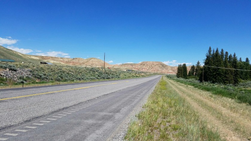 As I was getting closer to our destination of Dubois, I came around a bend and was stunned by the mountains in front of me. Totally different from what I’d been seeing. These were layers of red and white rock that went on for miles.