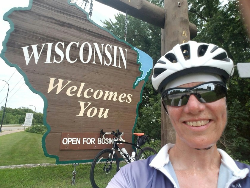 Eventually made it to the Welcome to Wisconsin sign. Soon after that, crossed the Big Muddy aka Missippi River.