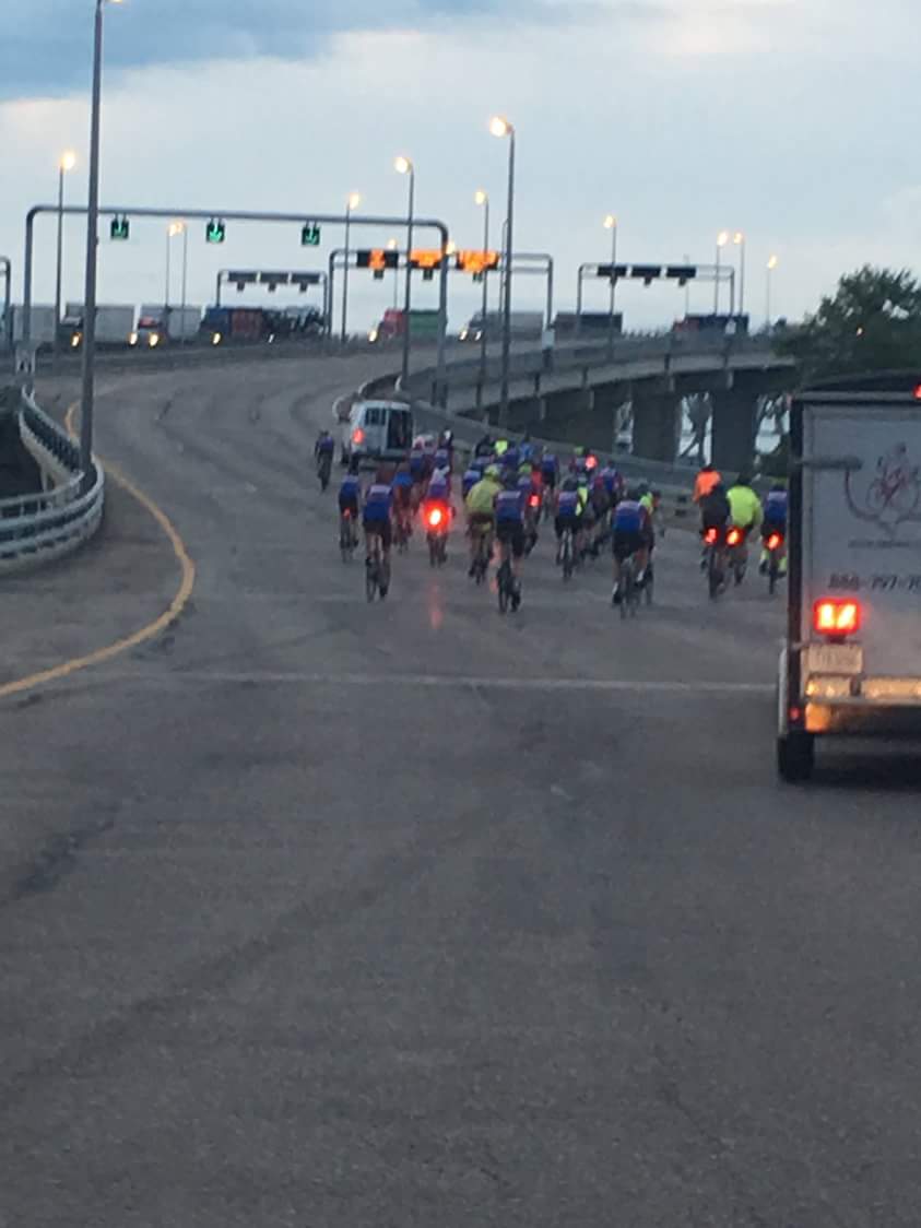 The day started early. Breakfast at 5:30. Load at 6:15. Bikes ready and lined up at 6:30. We were a parade as we made our way to the bridge. Getting across was easy but we had to check in with the Canadians once we got to the other side.