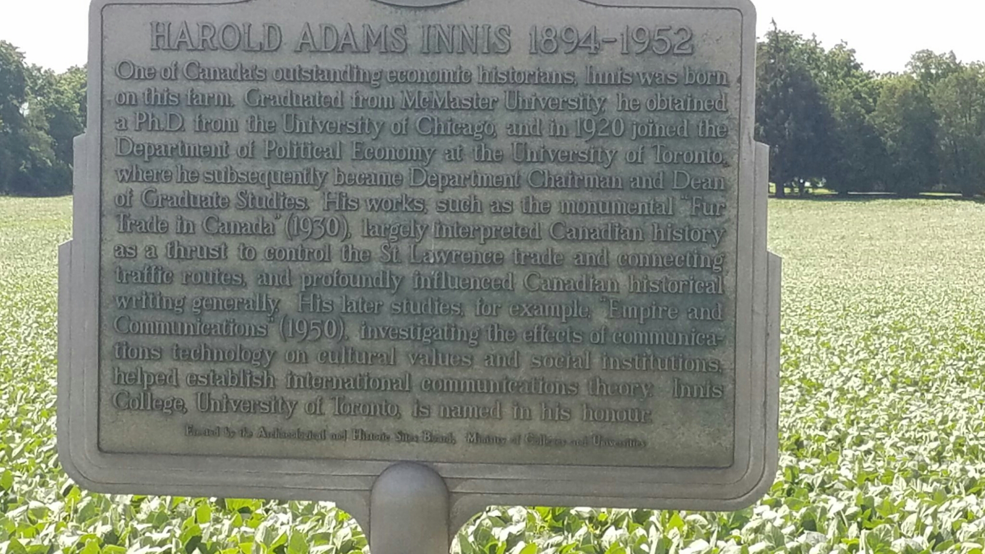 Just beyond the buggy was this marker for Harold Adams Innis marking his birthplace and providing information on his contributions to the world.